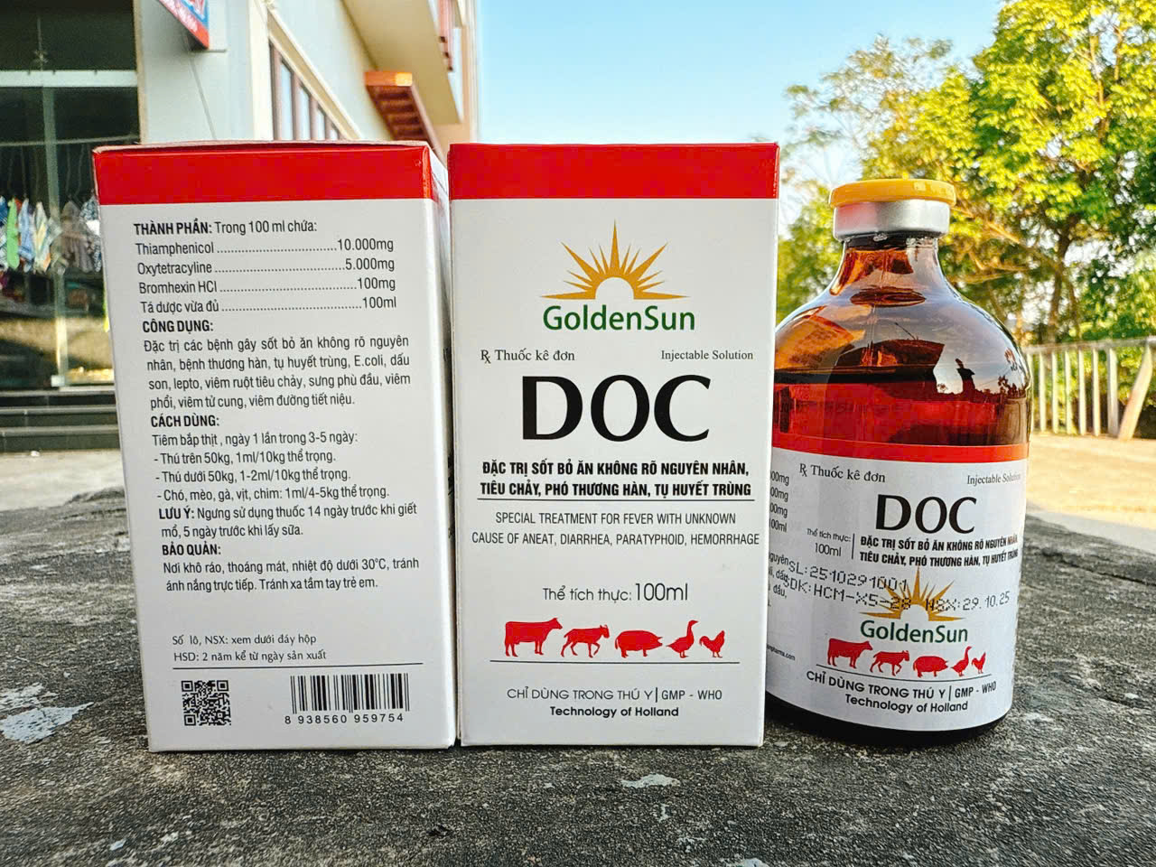 - Đặc trị các bệnh gây sốt bỏ ăn không rõ nguyên nhân, bệnh thương hàn, tụ huyết trùng, E.coli, dấu son, lepto, viêm ruột tiêu chảy, sưng phù đầu, viêm phổi, viêm tử cung, viêm đường tiết niệu.