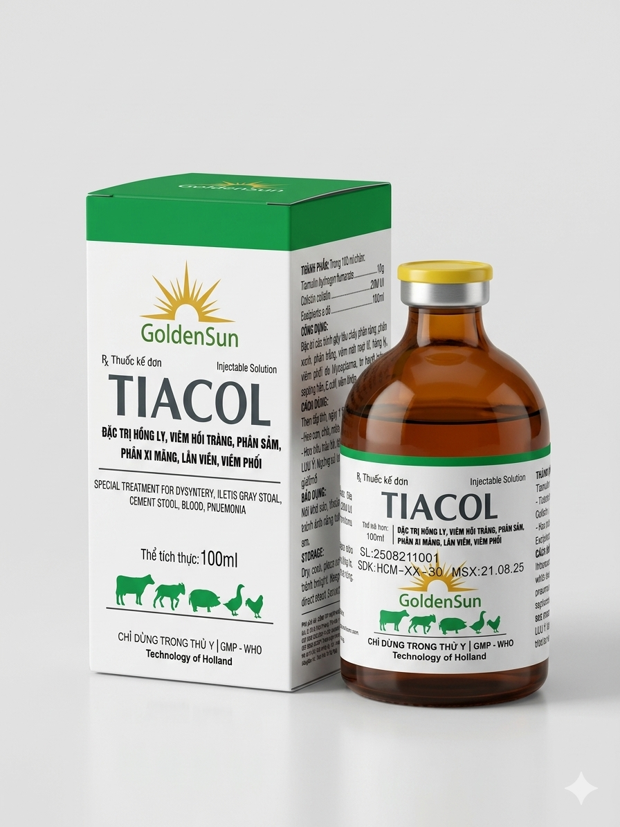 - Đặc trị các bệnh gây tiêu chảy phân vàng, phân xanh, phân trắng, viêm ruột hoại tử, hồng lỵ, viêm phổi do Mycoplasma, tụ huyết trùng, thương hàn, E.coli, viêm khớp.